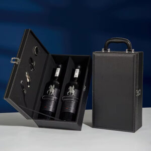 Caja de cuero para 2 vinos con su logotipo grabado en estuche.